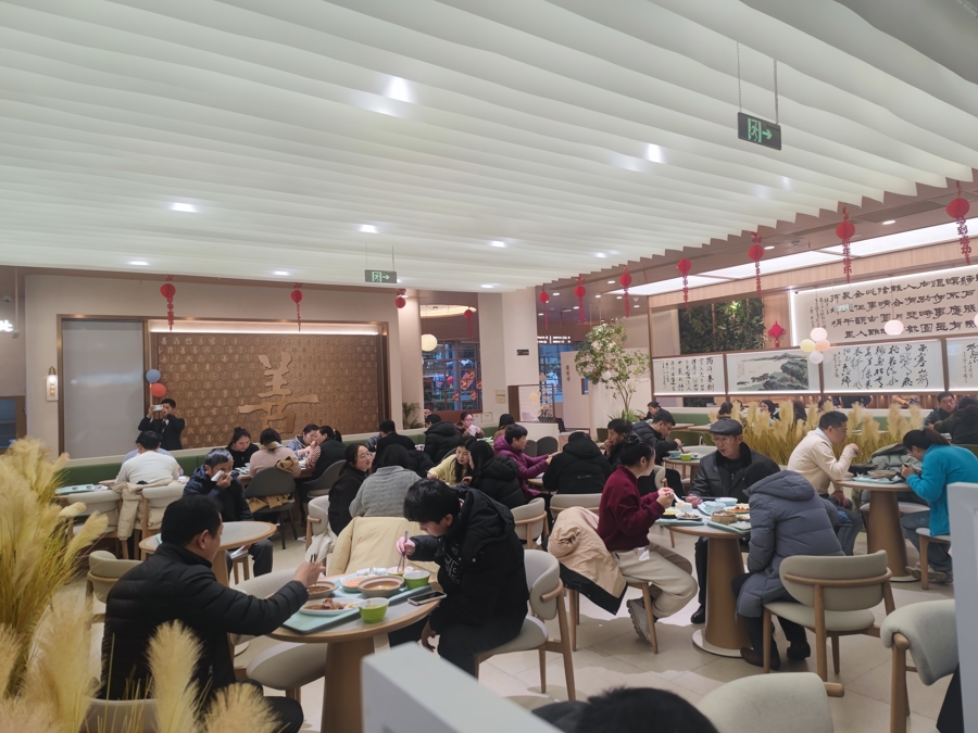 食堂内还设有三个风格各异的包厢,适合家庭聚餐或小型宴请。随着春节临近,食堂今年特别推出“社区年夜饭”套餐,价格从888元到2000元不等,让居民无需远行,就能在“家门口”享受一顿团圆盛宴。“以前订酒店又贵又难,现在走几步就到,氛围还好!”已预订年夜饭的李女士满意地说。